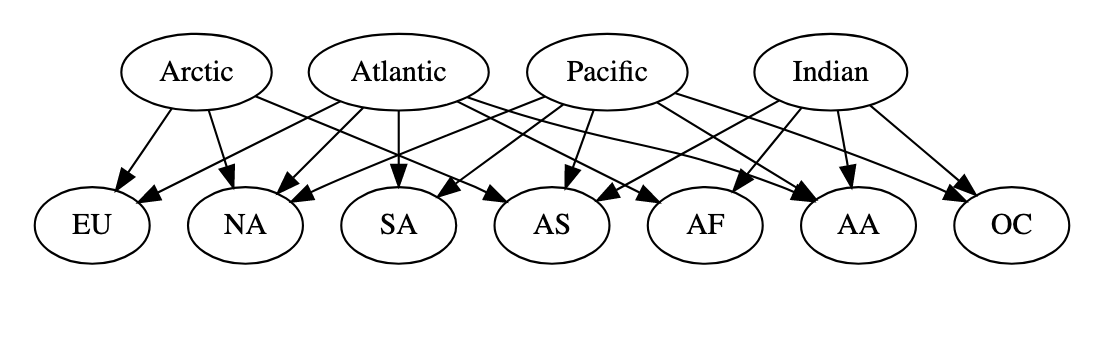 e onde as siglas abreviam continentes (e.g. $NA$ = North America, $AF$ = Africa, etc.)