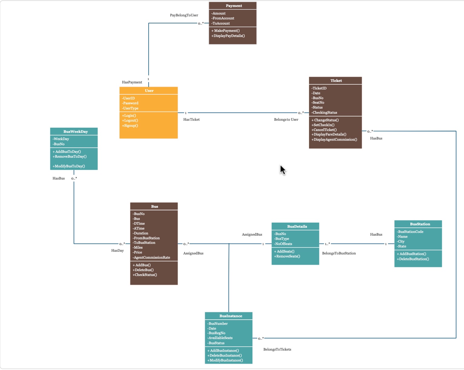 ao analisar o diagrama UML abaixo (créditos: creately.com) de um On-line bus reservation system.